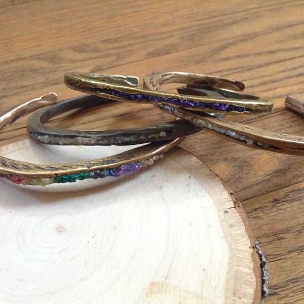 Bangle with Chip Inlay Black Willow $76.00 Default Title - $76.00 Quantity Thanks for signing up for restock notifications! There was an error signing up for restock notifications. Please try again. This product is currently sold out. Please fill in the form below if you'd like to be notified when it becomes available. Ride the snake-Serpent BangleInspired by shaman and visionary artist, Pablo Amaringo, this collection hopes to be reflective of his prolific work inspired by Ayahuasca journeying. Molded in wax and cast in bronze. Made in California.
